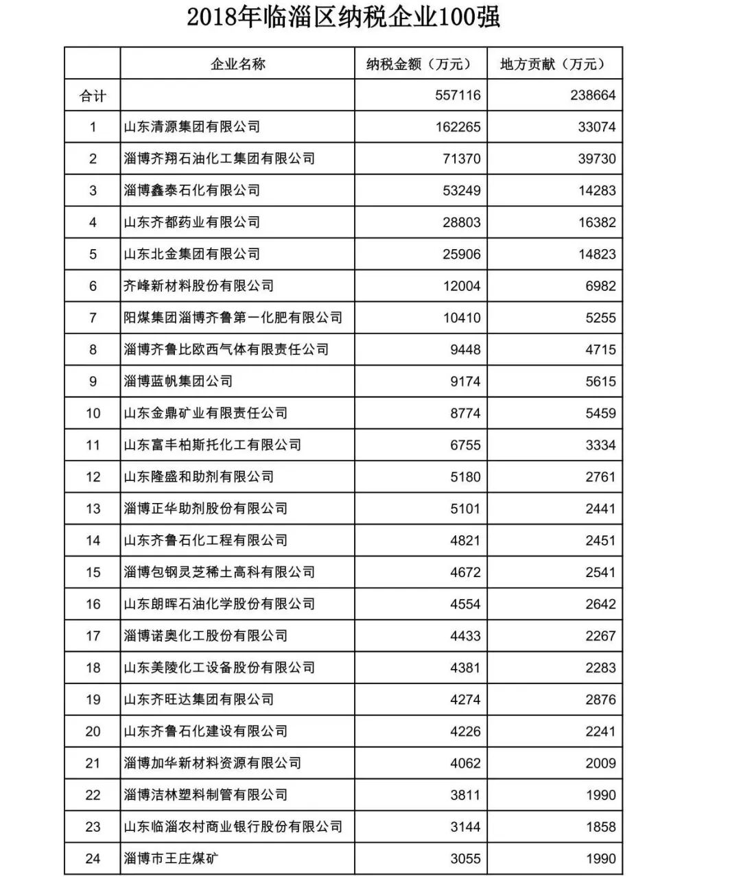 临淄信息丨我区2018年纳税百强企业排行榜发布