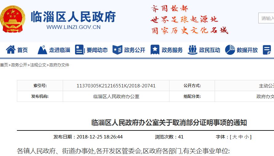 临淄“两个证明”被取消 一项业务开通网上办理!