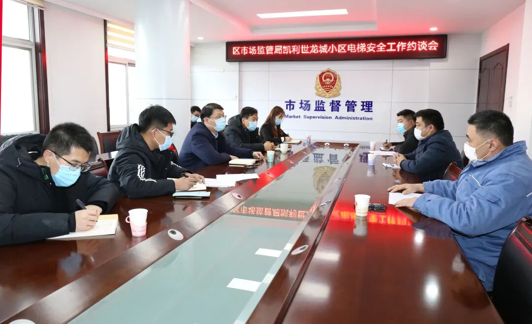 凯利世龙城小区电梯安全工作约谈会根据“区长,我想对你说”网络互动群众建议,1月16日,区市场监管局组织召开凯利世龙城小区电梯安全工作约谈会。局党组书记、局长张磊,副局长王荣章,凯利世龙城小区物业公司,电梯维保单位及