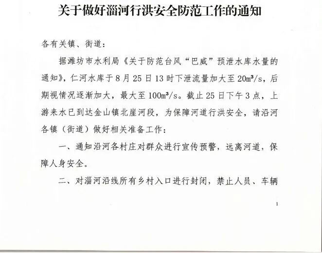 紧急通知!紧急通知!!紧急通知!!!8月25日开始,青州仁河水库开始放水请大家不要到淄河两岸观看不要在淄河滩附近逗留游玩,以免发生危险现下河滩各路口已经封闭,请各位绕行行驶,请大家相互转告!谢谢配合!来源:鲁中晨报
