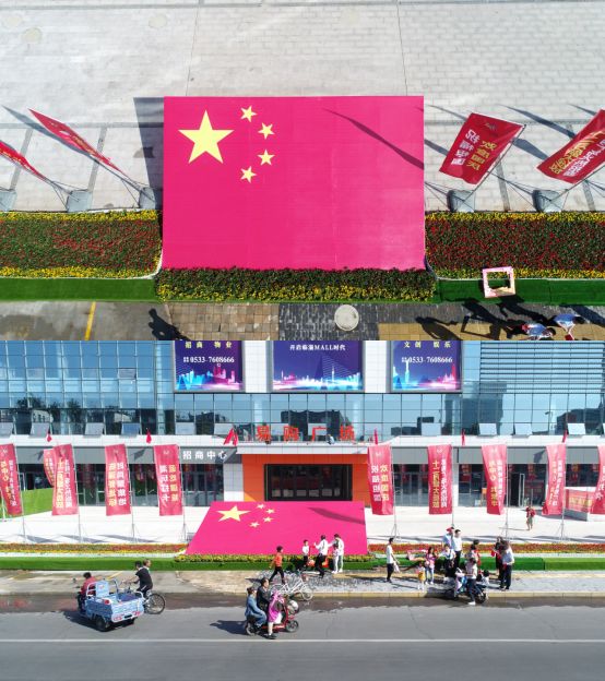 足足45个平方,就问你大不大?这面超~超~超大的国旗不在北京阅兵现场,就在我们的家门口,桓公路易购广场!为了献礼祖国70周年华诞,易购广场在刚刚开放的前广场,精心布置了这面超大的国旗,让我们在家门口就能够感受到七十周年大庆
