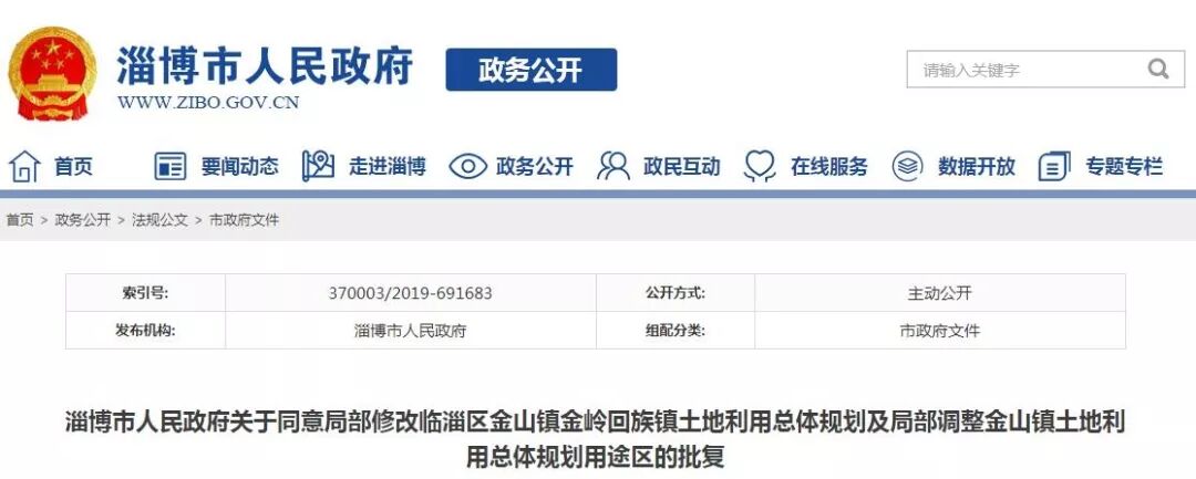 近日淄博市人民政府网站发布淄博市人民政府关于同意局部修改临淄区金山镇金岭回族镇土地利用总体规划及局部调整金山镇土地利用总体规划用途区的批复▼▼▼临淄区人民政府:报来《关于局部修改临淄区金山镇、金岭回族镇
