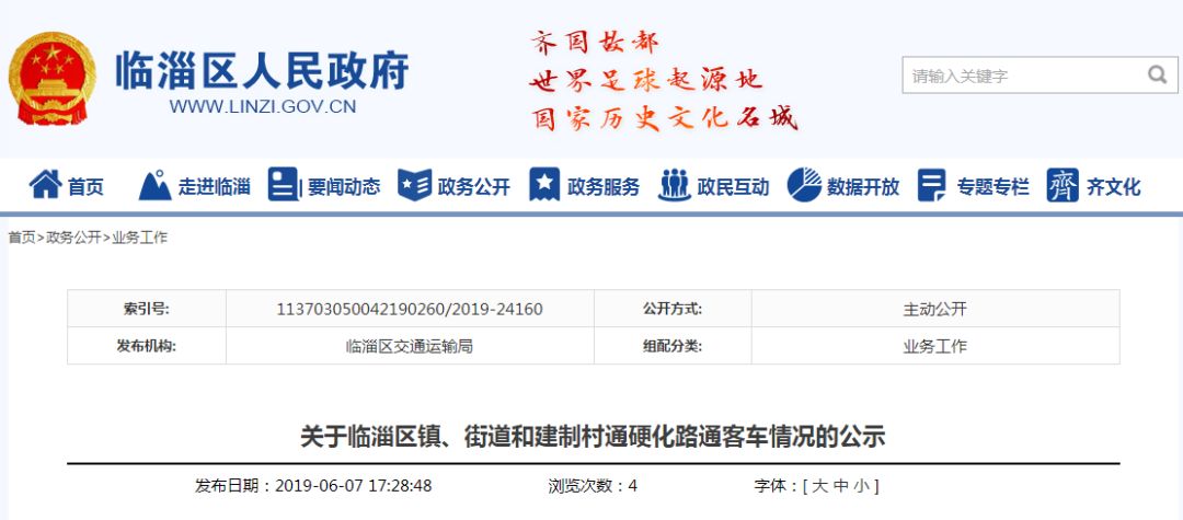 昨天,临淄区人民政府官网发布《关于临淄区镇、街道和建制村通硬化路通客车情况的公示》,临淄区人民政府官网发布465个村级单位,其中居委会61个,建制村404个已全部通硬化路、通客车,建制村通硬化路率、通客车率均为100%。公