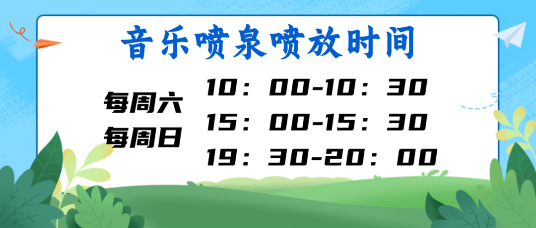 孝妇河湿地公园音乐喷泉开放啦!为进一步提升公园品质活力、满足游客观赏体验,从3月16日起,孝妇河湿地公园音乐喷泉周末常态化喷放。具体开放时间如下:温馨提示:喷放时间如有调整,将在该公众号及时发布通知。如遇雨雪、3级及