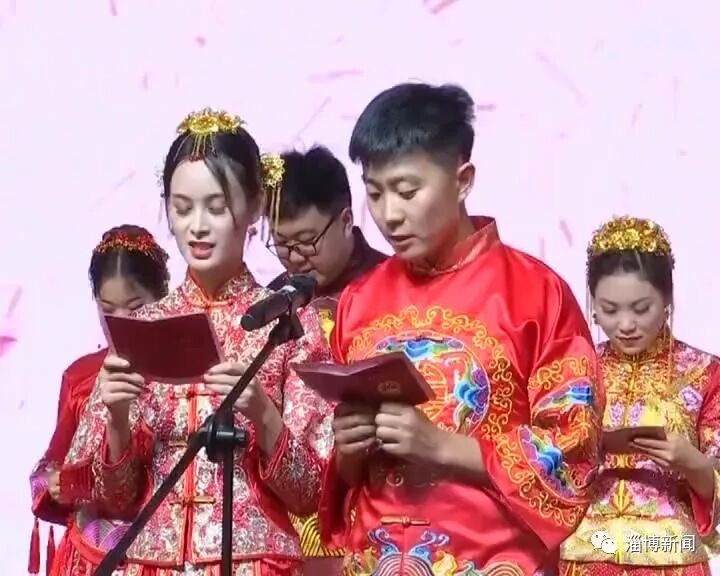 今天,临淄区首届新时代文明实践集体婚礼暨第七届玫瑰节系列活动在皇城玫瑰谷开幕,10对新人在亲友的见证下,以新时代婚礼的形式喜结连理。新人:我们自愿结为夫妻,从今天开始,我们将共同肩负起婚姻赋予我们的责任...正在宣读