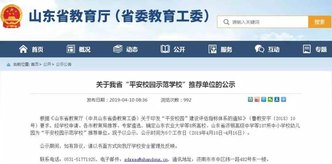 今天,山东省教育厅网站公示了我省“平安校园示范学校”推荐单位,淄博共有13所学校进入公示!△网站截图小编了解到淄博共有13所学校进入公示包括1所高校12所中小学幼儿园高等学校淄博职业学院中小学幼儿园淄博市张店区祥