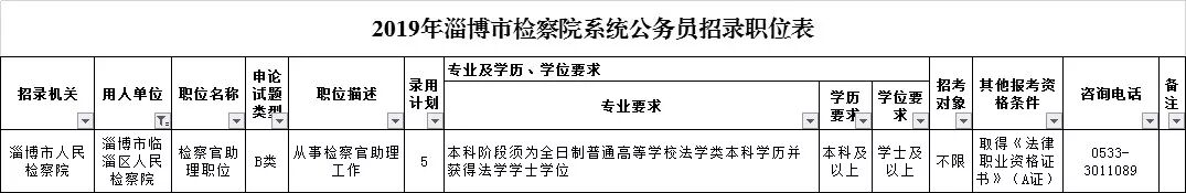注意!2019年淄博公务员招录工作即将开始!今天上午,淄博市公务员局发布2019年淄博市考试录用公务员公告以及2019年淄博市公务员招录职位表。此次淄博共招录公务员44名,临淄共招录12人其中,临淄区人民检察院招录5名检察官助