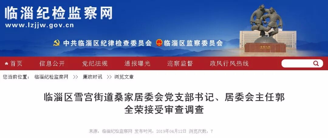 临淄区雪宫街道桑家居委会党支部书记、居委会主任郭全荣涉嫌严重违纪违法,目前正接受临淄区纪委监委纪律审查和监察调查。接网民举报,网民“极光”在QQ群对群内网友悼念四川木里火灾牺牲消防员的言论发表评论,公然侮辱诋