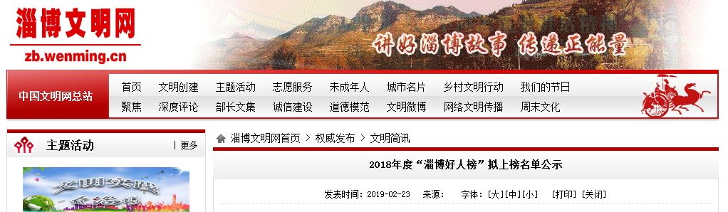 2019年2月23日淄博市文明网发布好消息淄博60人被点名表扬快看都有谁是你认识的吗↓↓↓为培育和践行社会主义核心价值观,推进淄博市公民思想道德建设深入发展,充分发挥身边好人的示范带动作用,努力营造崇德向善、见贤思