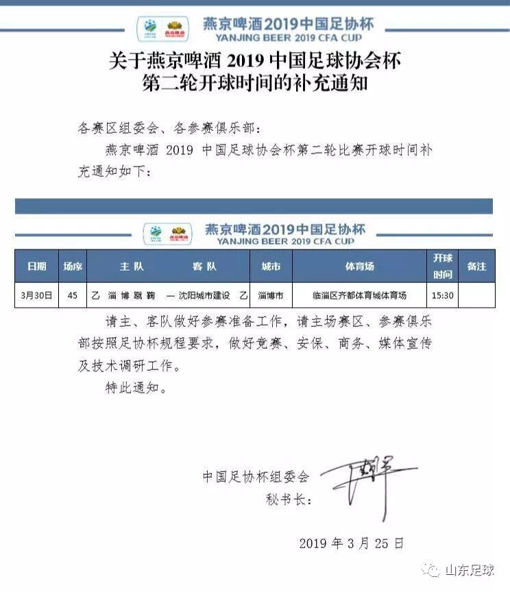 【赛事】淄博蹴鞠2019中国足协杯赛第二轮开球时间确定