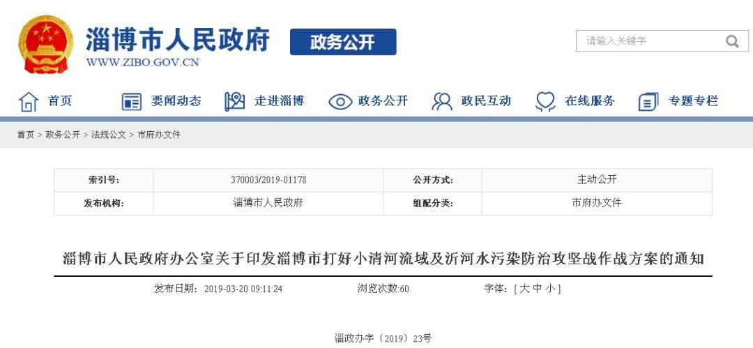 近日,淄博市人民政府网站发布《淄博市打好小清河流域及沂河水污染防治攻坚战作战方案的通知》。一、主要问题(一)主要河流环境容量不足。我市主要河流均为雨源性河流,无生态补水,河流补水主要为城镇污水处理厂和工业企业处