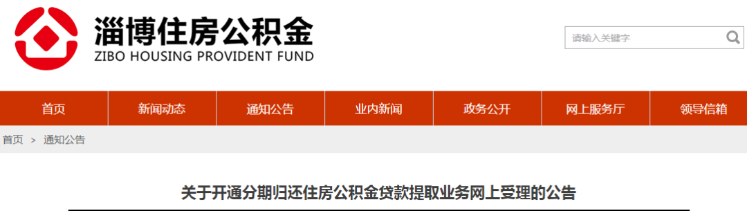 日前淄博市住房公积金管理中心发布关于开通分期归还住房公积金贷款提取业务网上受理的公告↓↓↓△网站截图即日起,淄博市住房公积金管理中心开通分期归还住房公积金贷款提取业务网上受理,有关事项通知如下:●●●●—01