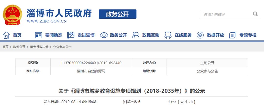 8月15日,淄博公布关于《淄博市城乡教育设施专项规划(2018-2035年)》的公示(一)规划对象城乡学前教育(幼儿园)、小学、初级中学、高级中学、中等职业学校、特殊教育学校等设施。(二)规划范围张店区、淄川区、博山区、周村区、临
