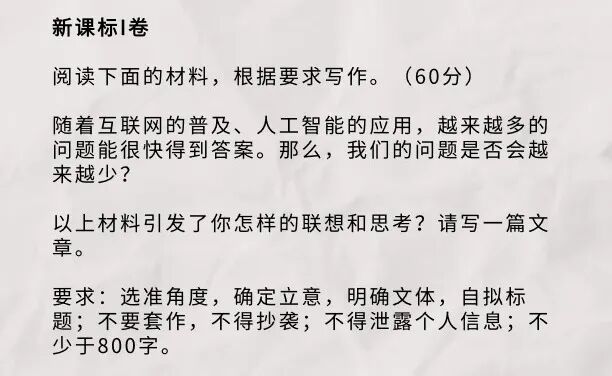 今年广东高考采用新课标I卷,作文题受到大众关注,题目涉及火热的人工智能话题。广东2024高考作文题新课标I卷,内容如下:这个猝不及防的作文题目其实也是意料之中。ChatGPT辅导作业、写工作报告、写求职简历......在社交网