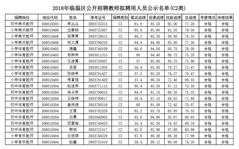 2018年临淄区公开招聘教师拟聘用人员公示