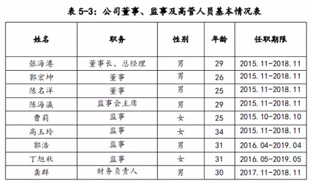值得一提的是,早在2015年11月,三位年轻的董事会成员就已走马上任,上任时的年龄分别为27岁、24岁和23岁。