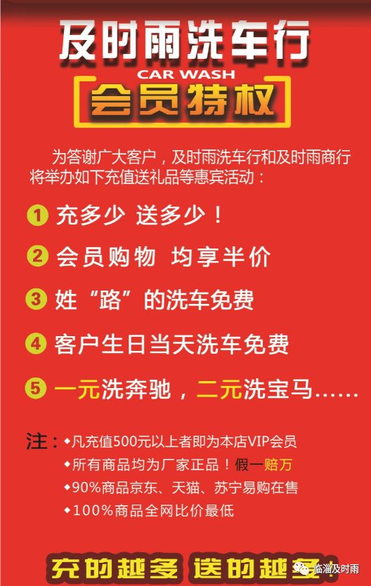 热烈祝贺临淄及时雨洗车行 及时雨商行2018年12月12日隆重开业!上万商品,比价最低——90%商品,京东、天猫、苏宁易购在售,100%商品全网比价最低。