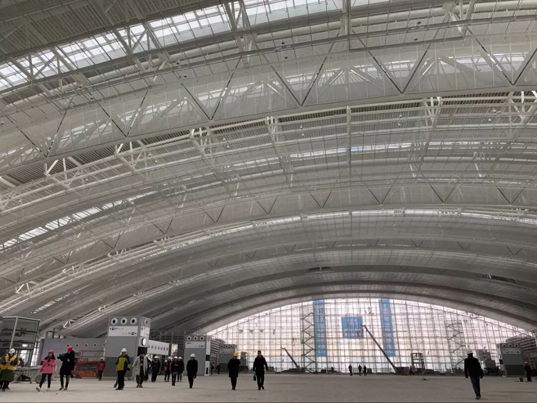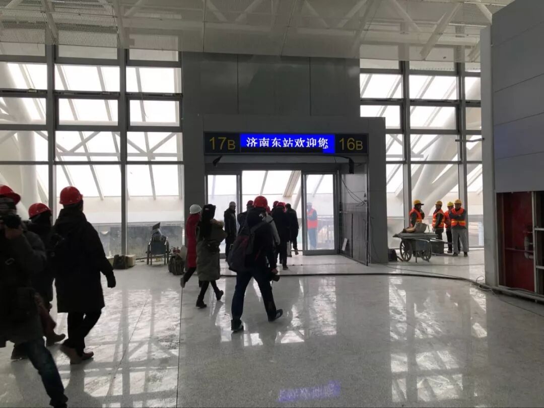 济南东站建设指挥部相关负责人介绍,济南东站月底开通,目前各项准备工作基本完成,进入开通倒计时。去年6月15日完成施工和监理招标,主站厅像是太阳,两侧裙房像是浪花,象征“日出东方”,总长408米,宽度最大158米,大跨度、大空间,4万多平米高铁候车室没有一个柱子,宽敞明亮,水电已经通了,供暖正进行设备调试,12月15具备供暖条件。
