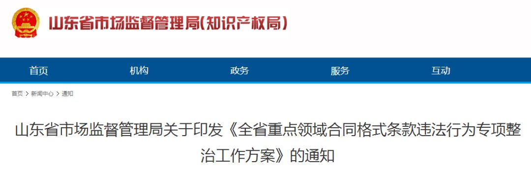 近日,山东省市场监管局印发《全省重点领域合同格式条款违法行为专项整治工作方案》,决定针对重点领域不公平合同格式条款突出问题,开展重点领域合同格式条款违法行为专项整治工作。