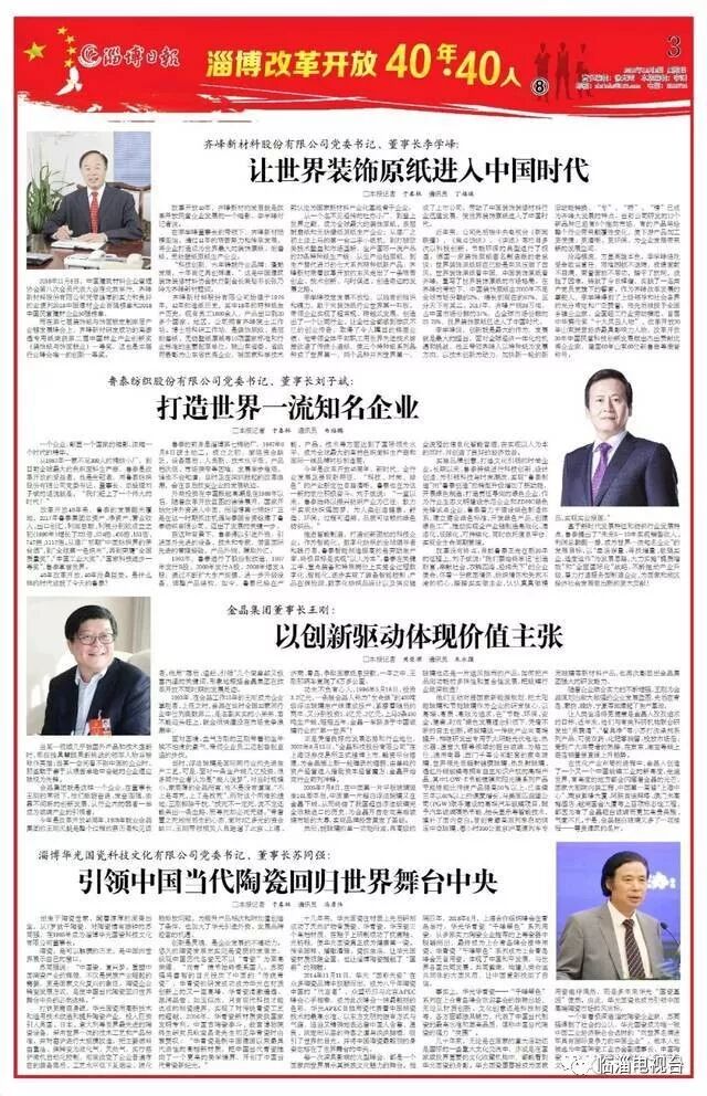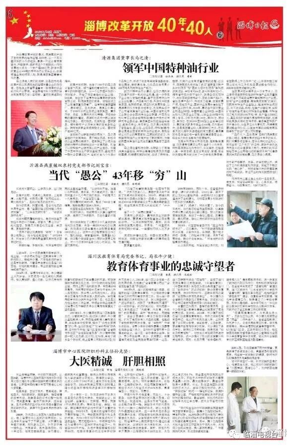 日前,由淄博日报社策划的“淄博改革开放四十年四十人”名单正式出炉,其中临淄区有8人入选。分别是:
