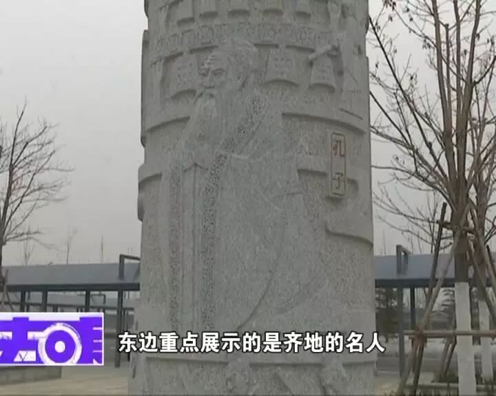 中心广场上从南往北,我们设置了八块小地雕和一个中心大地雕,这八块地雕呢各个方面展示,我们从公元前11世纪到近代,我们历史的发展成就,中心地雕呢也用这种,类似清明上河图的形式来展现我们齐国的当年那种繁荣景象,也给我们现在的齐地人啊,做一个文化普及,两侧的文化柱十二个上面呢,东边重点展示的是齐地的名人和到齐地的名人,西侧呢展示我们从法治 廉政文化渊源做了集中的展示