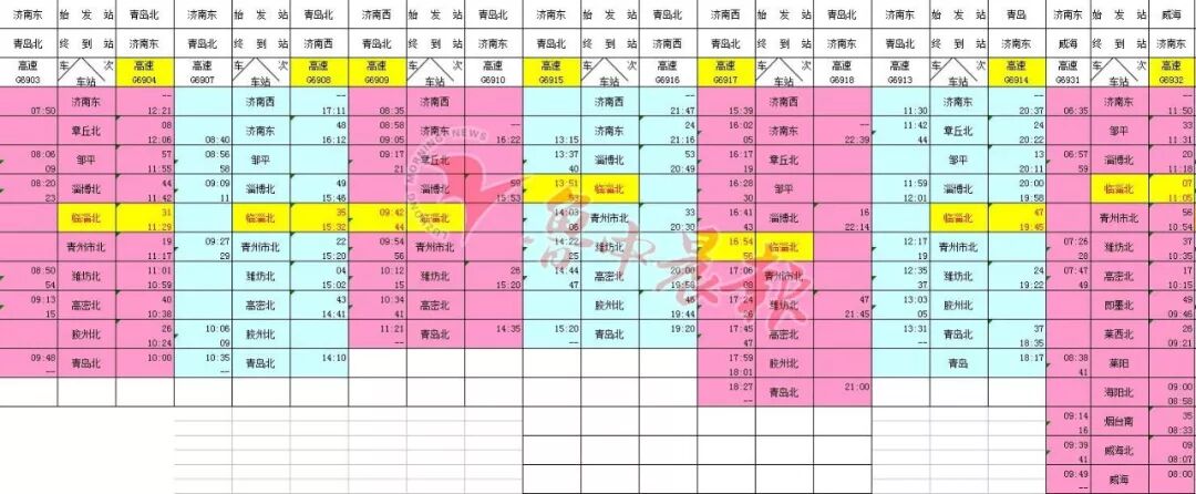 其中,G469次,济南东10:53发车,到淄博北11:22,用时29分钟,而现在胶济客专的动车组最快用时为42分钟;临淄北11:37发车,到潍坊北11:58,用时21分钟;临淄北11:37发车,到烟台南13:58,用时2小时21分钟。