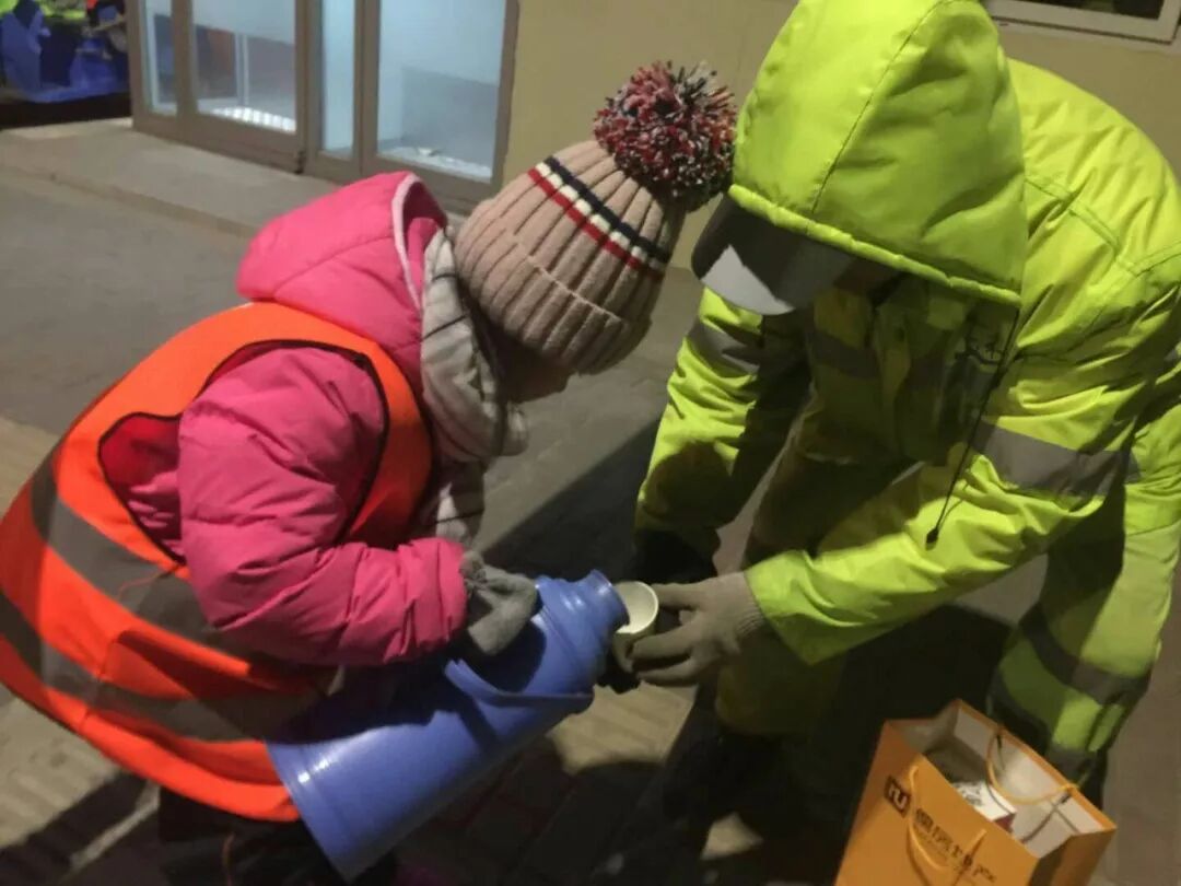 凌晨5:00,小志愿者携带爱心姜茶,出发——