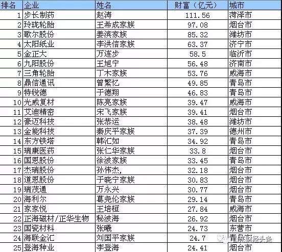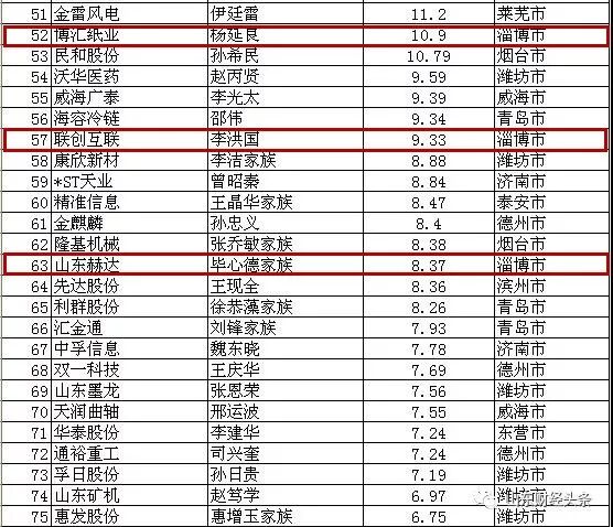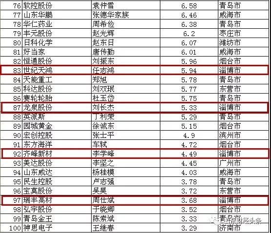 临淄最高21.58亿财富!我区三位企业家荣登2019鲁股百富