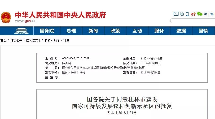 科技部副部长徐南平在作新闻发布时说,2018年2月13日,国务院正式批复同意桂林市、深圳市、太原市建设国家可持续发展议程创新示范区。