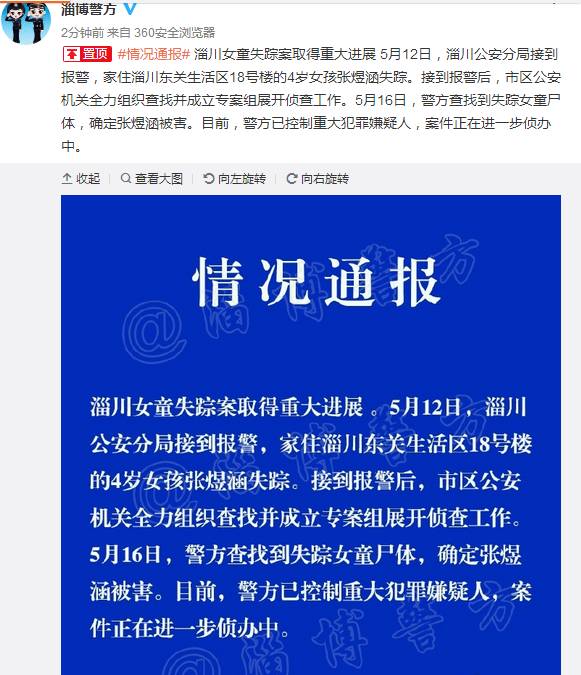 最新披露!淄川女孩张煜涵遇害案,凶手改判死刑!更多详细案情曝