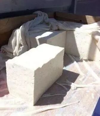 “点”要得法,每隔四五分钟点一次浆水,需一勺一勺慢慢点,性急不得。如此数回,待豆花一层层结块,水和豆腐泾渭分明时,轻轻捞起,用纱布包裹,稍稍挤压成形,豆腐块色泽清白如玉,一股酸香气扑鼻而来,令人垂涎。
