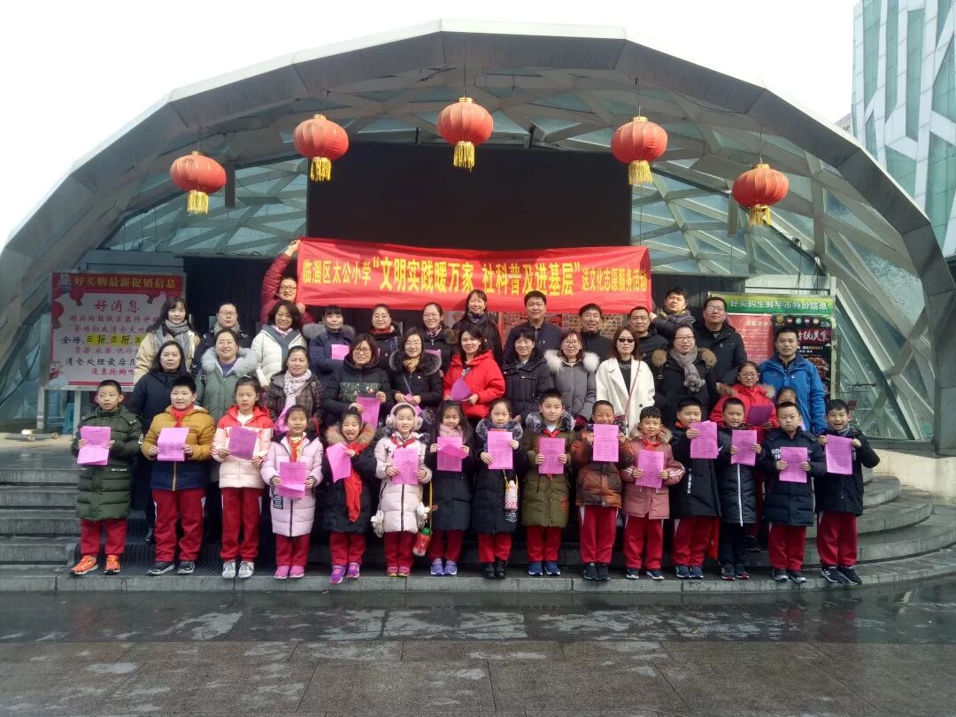 “红梅傲雪辞旧岁,九州大地迎新春。”为营造向上向善、文明和谐的良好风尚,根据上级文件要求,在2019年春节期间,太公小学党支部组织党员、少先队员开展了“文明实践暖万家 社科普及进基层”系列志愿服务活动。