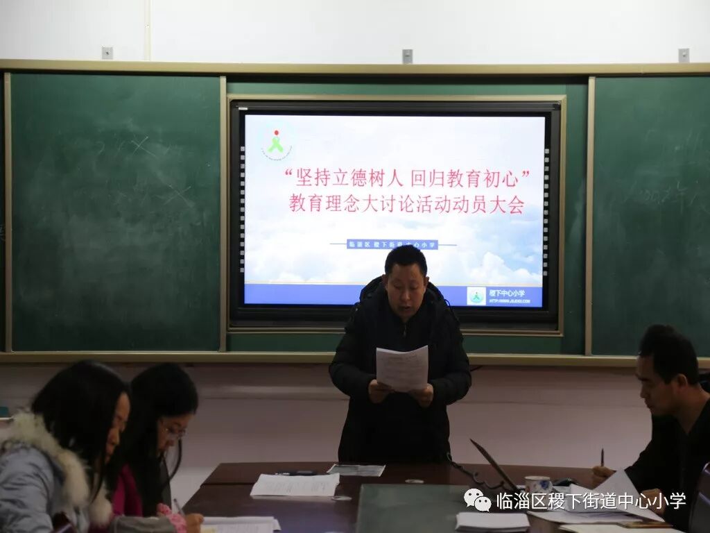 王振校长带领全体教师首先学习了“坚持立德树人,回归教育初心”教育理念大讨论主题教育活动实施意见。
