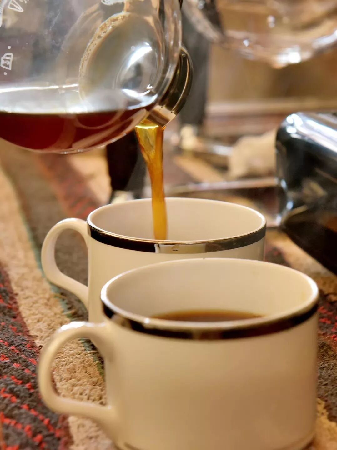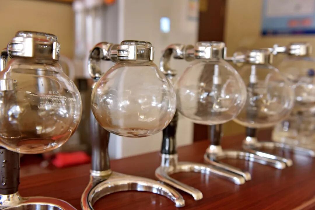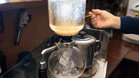 老俩口在有条不紊的煮着咖啡,虹吸壶和搅棒偶尔碰到一起发出了些许叮咚响,也许是他们独特的节奏,感染整个空间,连客人也被拽住慢下来。