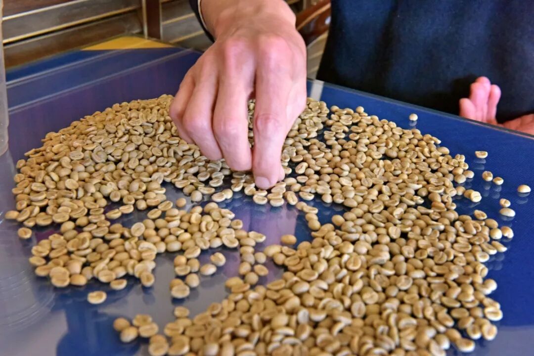 第一步就是要挑瑕疵豆,把品相不好或者有损坏的豆子挑出来。