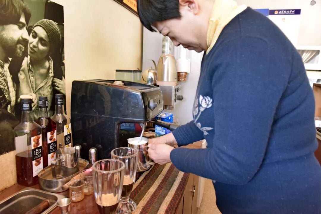 听同行的姐姐告诉我,他们老两口从很早就喜欢喝咖啡,那会儿临淄没有咖啡馆,就自己买咖啡机每天煮来喝,直到后来耐不住开了这家“啡客咖啡"。