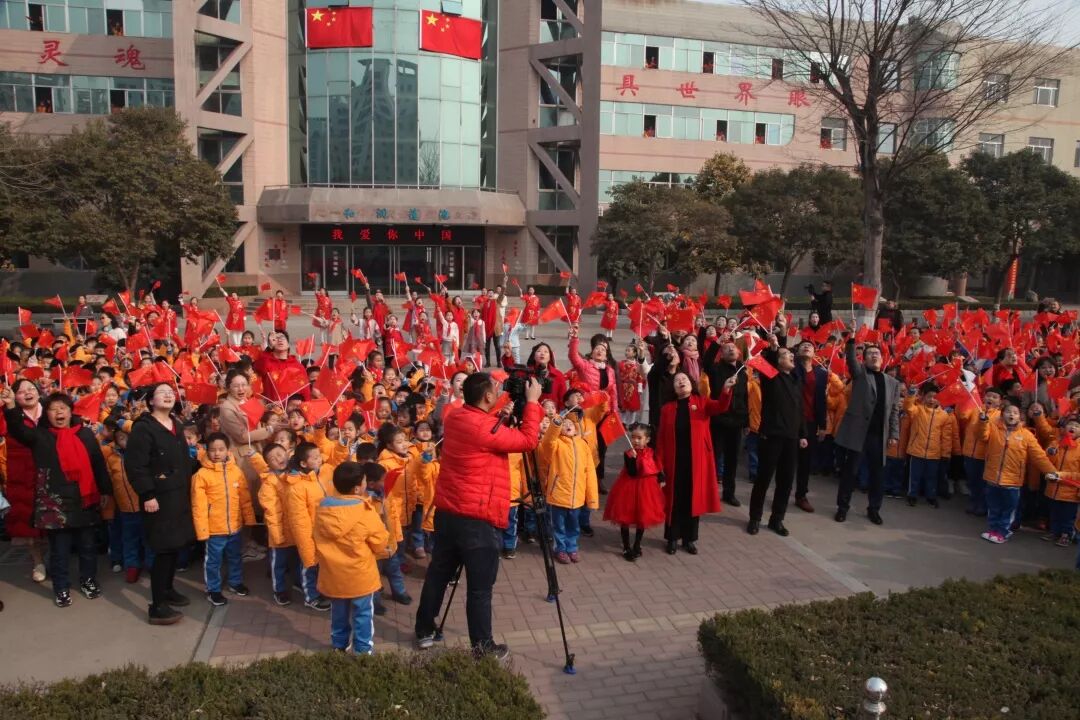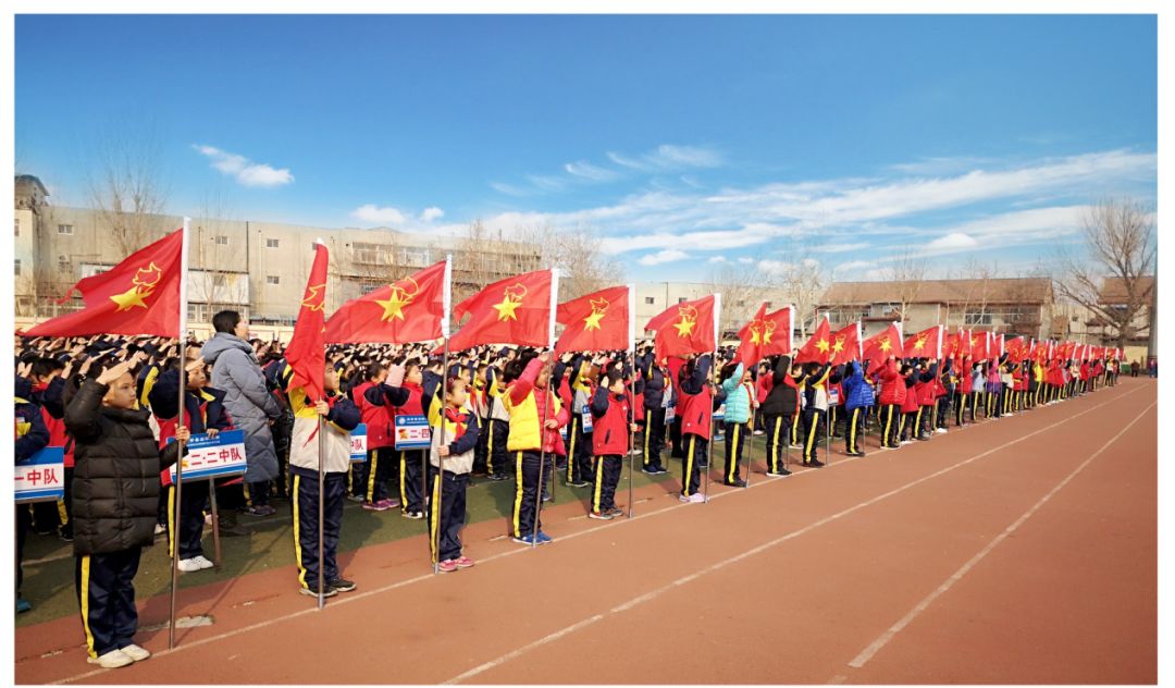 2800余名少先队员、辅导员挥舞着手中的国旗