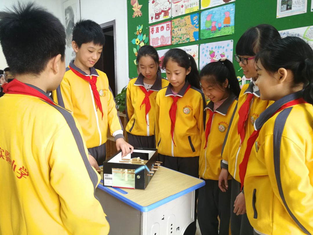 展示“小手拉大手 废物利用—手动足球”创意作品