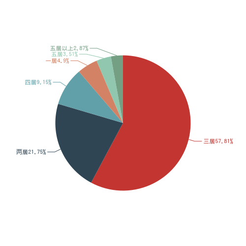 三居是网友关注的户型,搜索占比为57.81%;其次为两居占比为21.75%;四居搜索占比9.15%。
