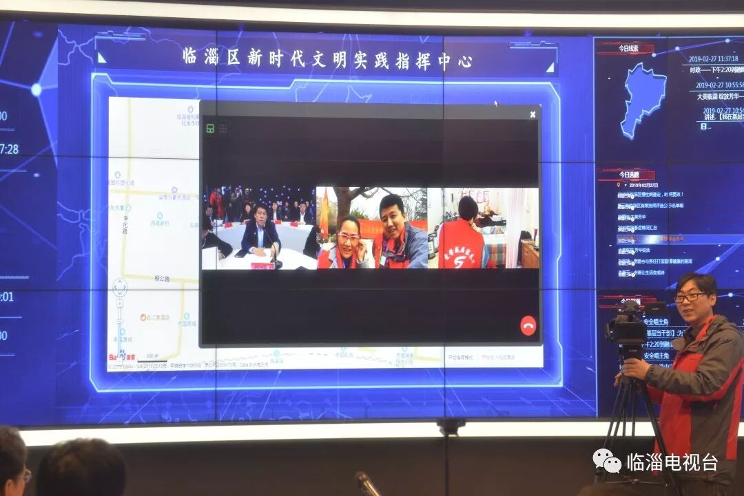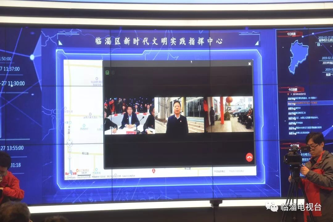 连线临淄融媒体朱台分中心、临淄融媒体凤凰分中心温家工作站揭牌现场。