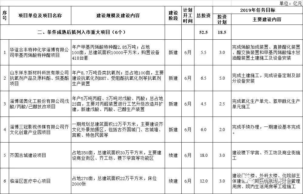 条件成熟后拟列入市重大项目6个,