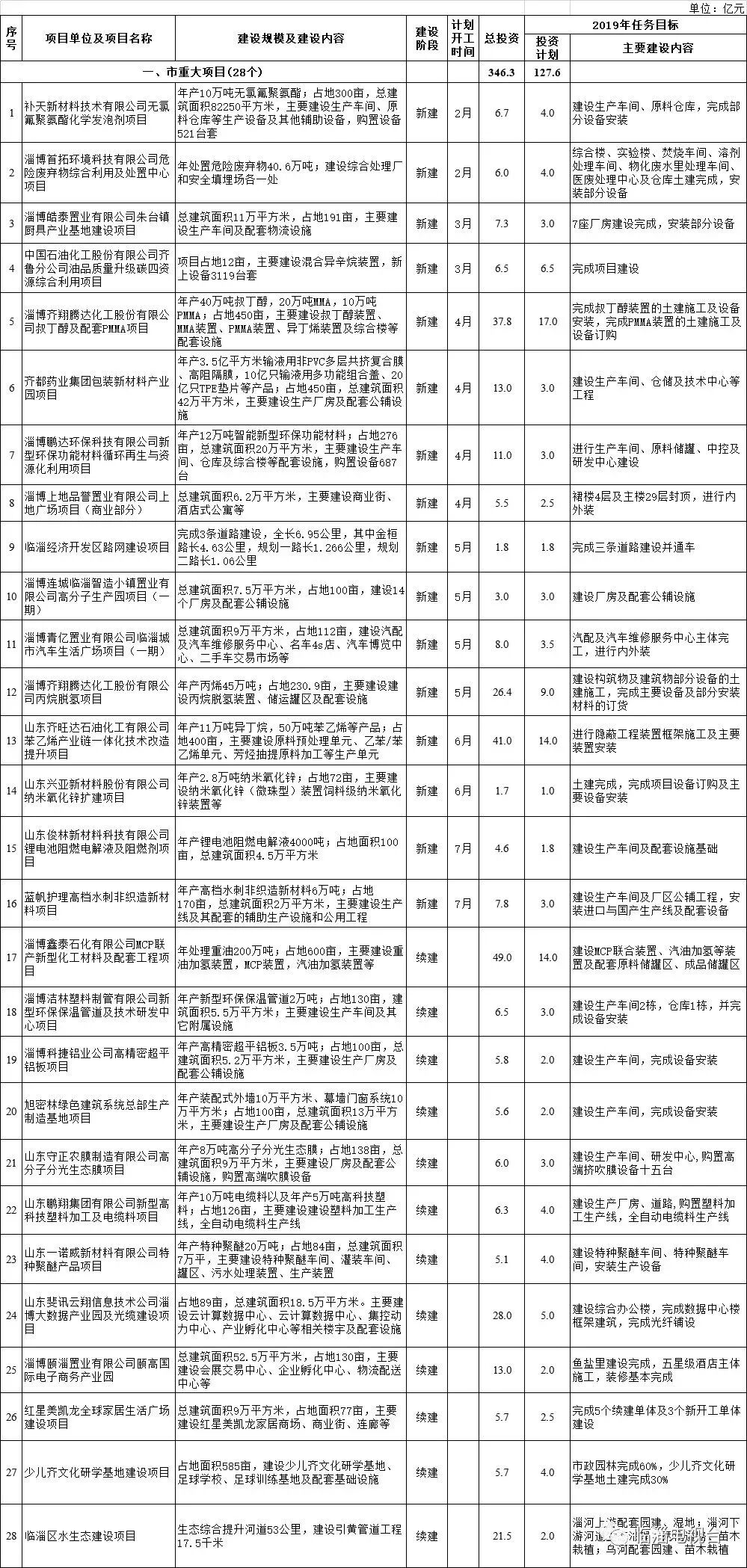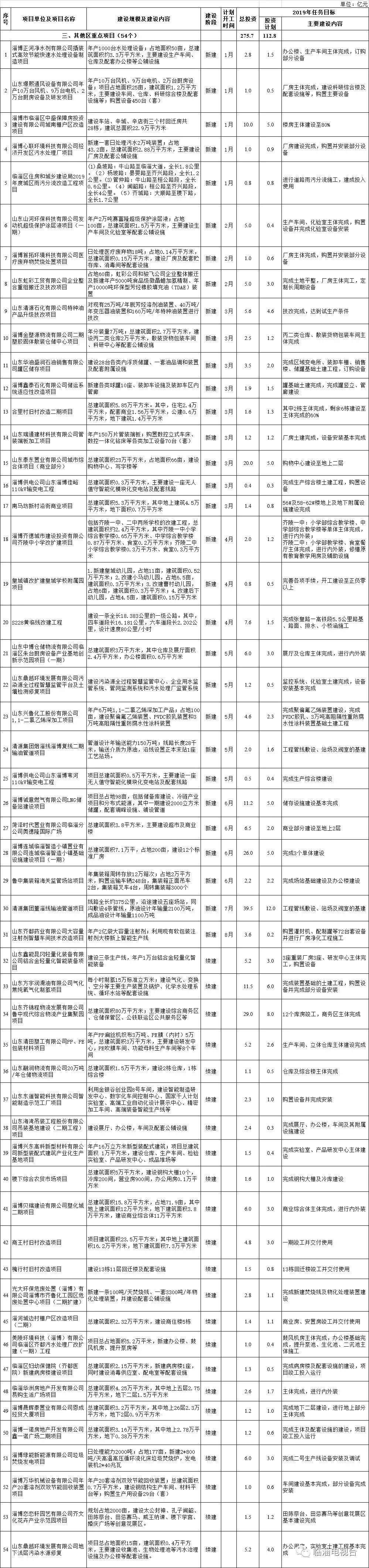 2019年,临淄区共列入市区重点项目88个,总投资674.5亿元,年度计划投资258.9亿元。其中,市重大项目28个,总投资346.3亿元,年度计划投资127.6亿元。
