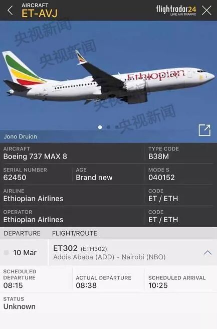 据报道,波音737 Max-8自2017年才在全球投入商业运行。去年7月,埃塞俄比亚航空公司刚刚引进该机型。