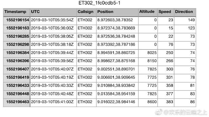 “24小时飞行雷达网站”纪录的埃塞俄比亚737MAX最后的飞行数据