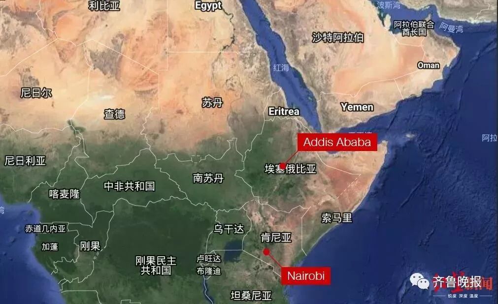 在埃塞亚的斯亚贝巴机场和肯尼亚内罗毕机场,乘客亲属焦急等待。
