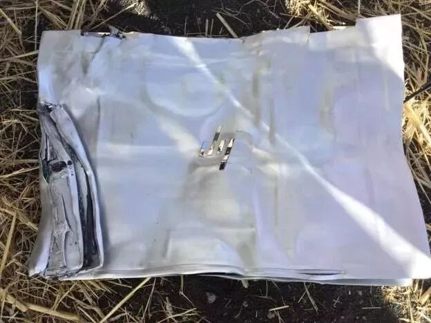 照片显示,航班残片遍地都是,地面砸出一个大坑。