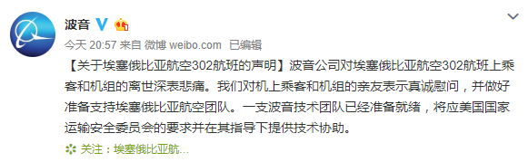 工作人员表示暂未接到航线调整或是其他内容的通知,若有调整或是其他一些信息会及时在“埃塞俄比亚航空公司中国”微博公布。