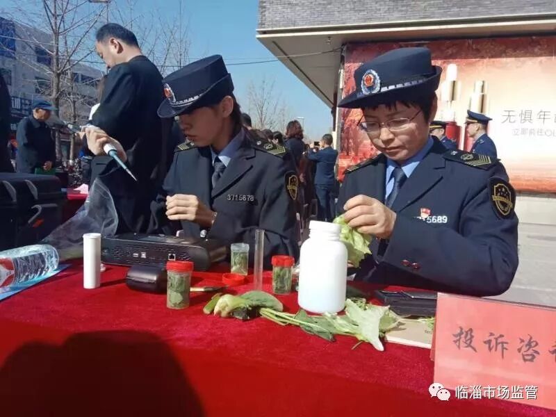 临淄区市场监管局充分利用食品快速检测设备,现场根据群众需求,对蔬菜农药残留进行快速检测,现场公示检测结果。