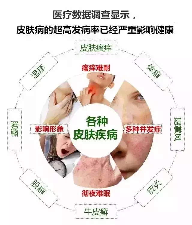 诸如上面所说的皮肤问题(湿疹、皮炎、宝宝湿疹皮炎,皮肤瘙痒、体癣、股癣、牛皮癣、鹅掌风、脚癣)其实会造成很严重的后果,损伤你的容貌,让你的皮肤变的难看,破坏你的免疫系统使你变得多病虚弱整体没有精神。