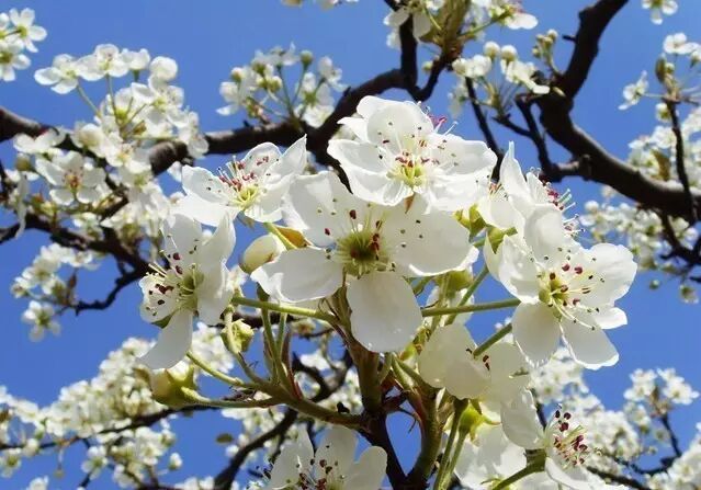 万亩梨园,千树万树梨花开,一片雪白美不胜收;百年以上的粉红色的海棠花、粉果花煞似娇艳,漫山的争奇斗艳,美不胜收。